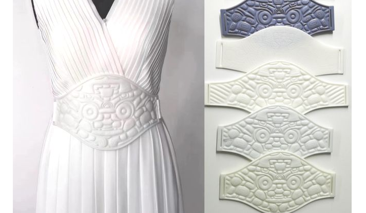 首先,她們在全國各地尋找不同的材料進行試樣,但分別出現(xiàn)了系在腰上太厚沒有美感,或太薄容易斷,或太硬無法彎曲,或太軟豎不起來等問題。為此,設(shè)計團隊試驗打印了數(shù)十塊腰封,掌握了材料與技術(shù)的巧妙融合,才得到最佳版本。